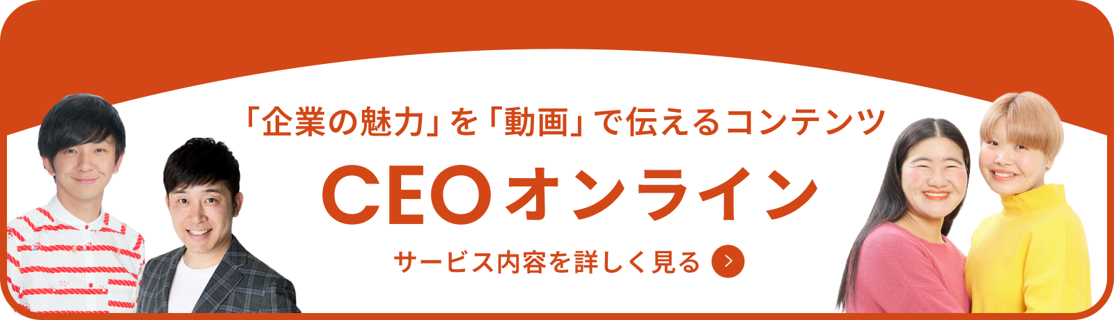 採用活動を行う中で年間2~3人しか応募がないため、CEOオンラインの利用を検討していたB社。本番は台本どおりではなかった為、出演中ずっと心配されていましたが、出演芸人のコミュニケーション能力が素晴らしく、スムーズに進行。動画投稿後は、なんと1ヶ月で62人からの応募があり、見事採用成功されました。